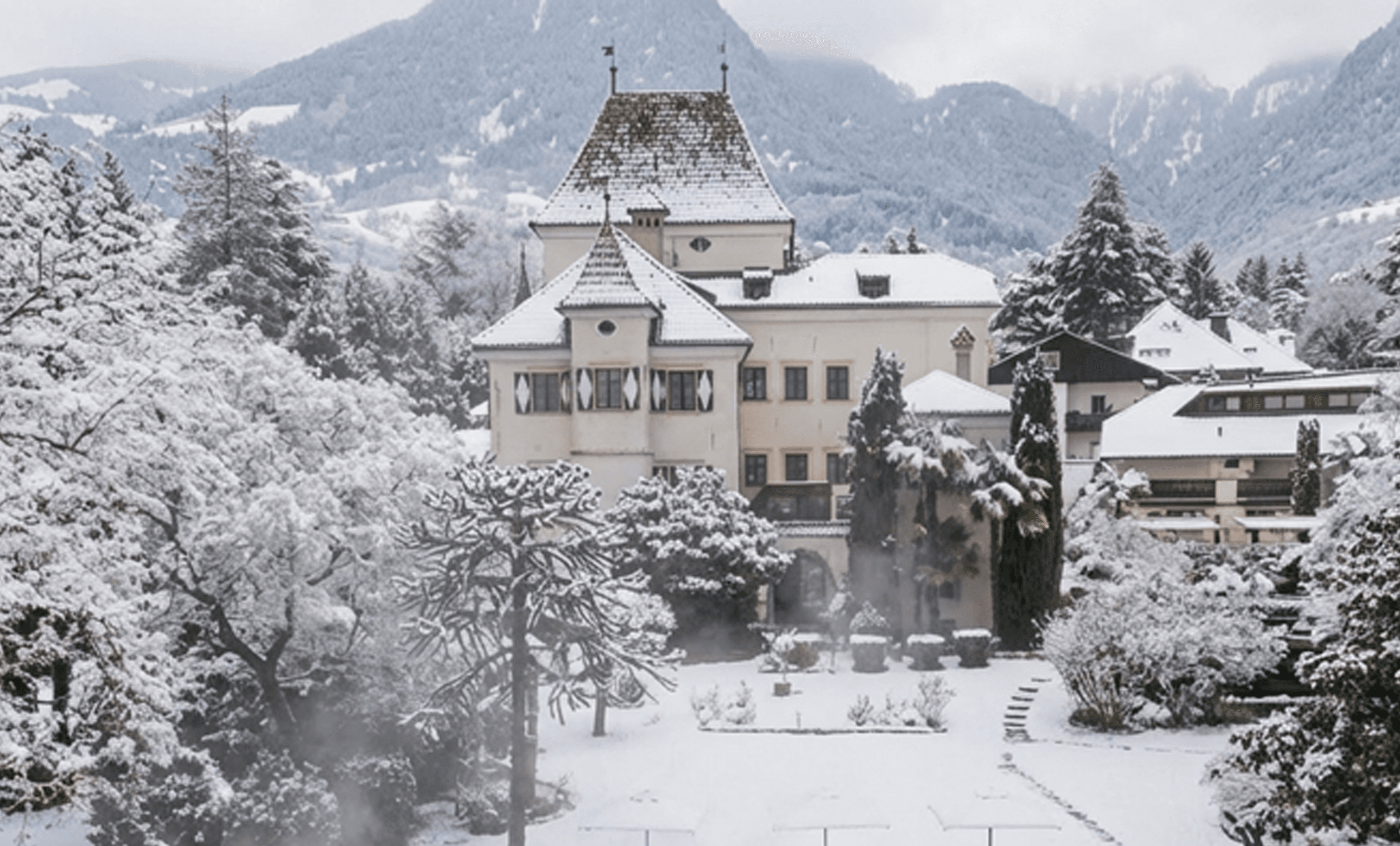 Castel Rundegg liegt im Herzen von Meran, umgeben von verschneiten Berggipfeln. Während in den Höhen klare Winterluft und weißes Schneepanorama dominieren, lädt die Stadt mit ihrem stimmungsvollen Weihnachtsmarkt, Lichtern und Düften zum Verweilen ein.